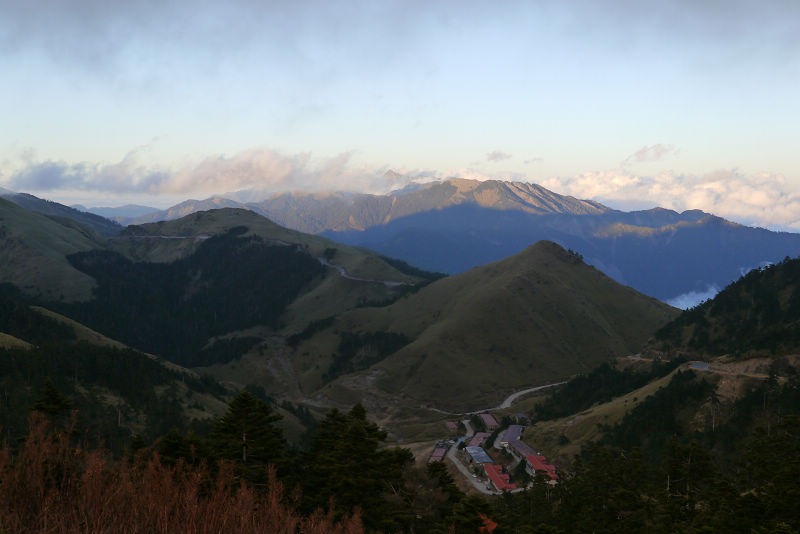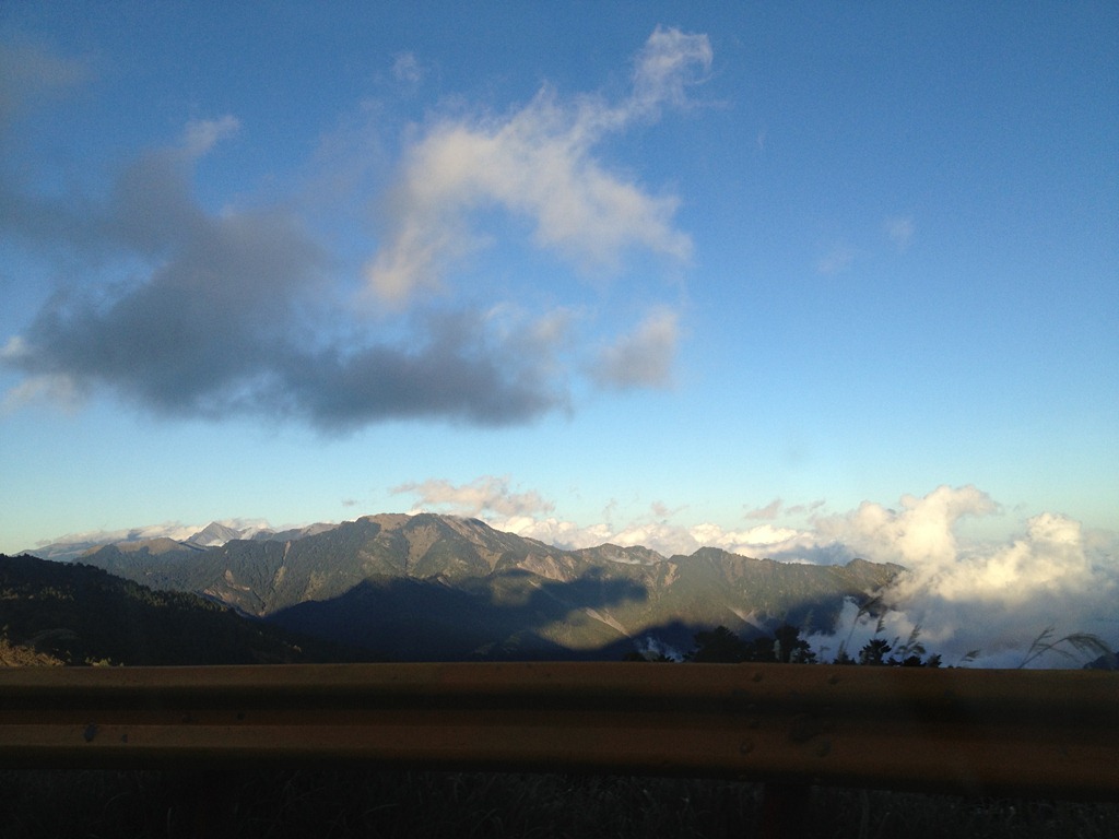 稍稍休息之後繼續往武嶺挺進,在花蓮時覺得山區烏雲密布,山上天氣可能不好,但其實不然,穿過了雲層之後,天空一片晴朗,壯麗的合歡山就近在眼前。