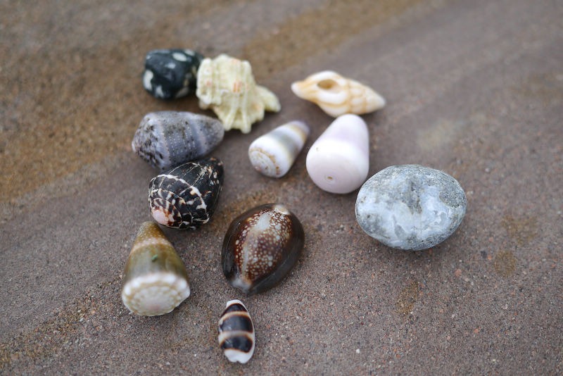 太陽雖然被雲遮住了,但海水的顏色還是很美,我撿了不少貝殼,帶回家做紀念。