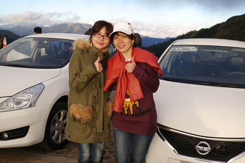 這一段高難度的路段,當然由熱血的優卡編輯大飛來駕駛,偶這時候就到後座休息,體驗BIG TIIDA的後座空間,但事後證明,這真是個錯誤的選擇,偶又想看中橫壯麗的景色,又被工作人員要求要補眠,加上大飛先生拿出他的看家本領,油門催到底,這趟山路跟昨天的Go-Kart有拚,就差沒有甩尾了,溫度越來越低,隱約覺得肚子咕嚕咕嚕的,還好這時候有人說要解放了,在新白揚休息一下,趕緊把可愛的小鹿斑比毛衣拿出來穿~~~