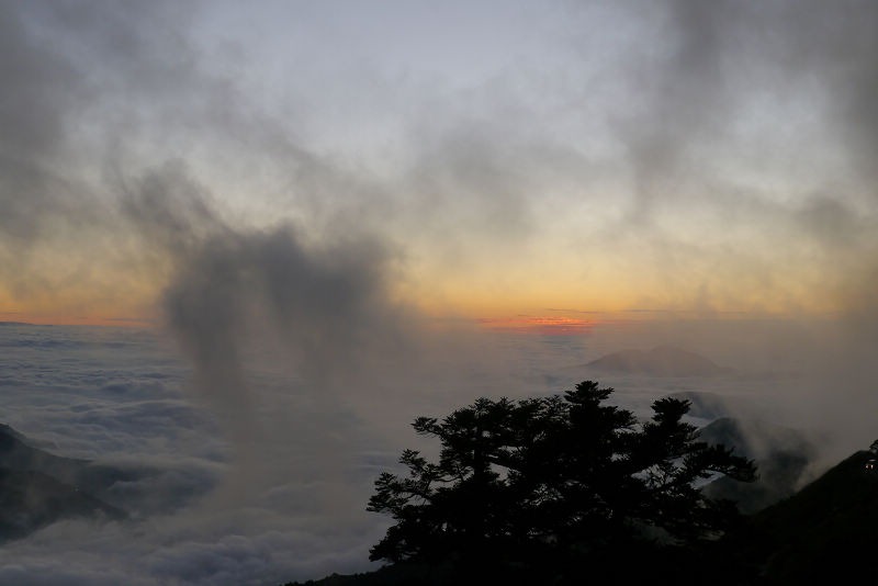 下山這種簡單的路程,就由我來啦~~才往下開沒多久,突然路邊停滿了車,正在狐疑著是甚麼熱門的景點,一個轉彎過去,眼前出現了一大片的雲海,伴著夕陽的橘色光芒,實在是太美啦!!! 說甚麼也要把車子趴在路邊,好好欣賞著難得一見的雲海絕景。