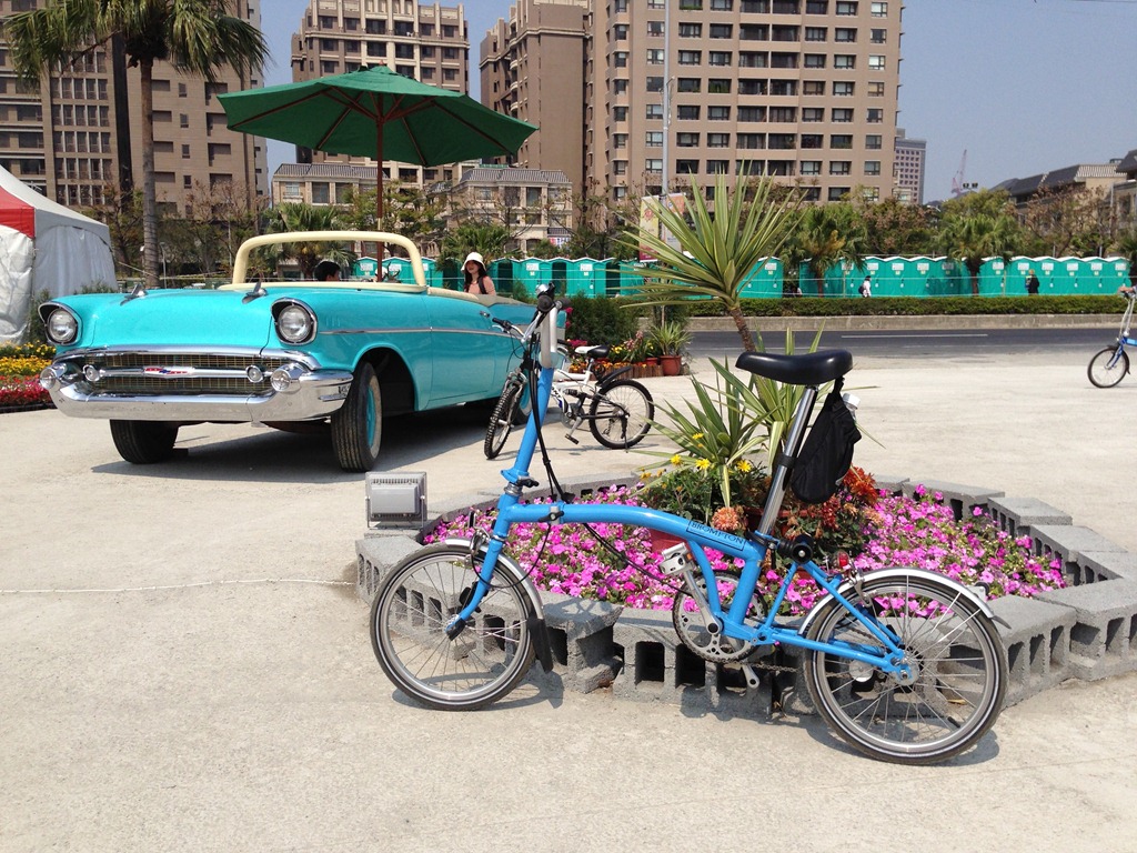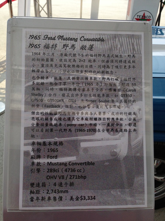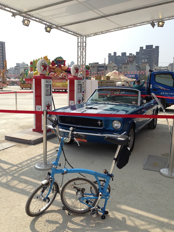 主行程結束後,往燈會騎去,首先看到的是古董車~跟小鵝號一樣顏色的野馬,1965年份。