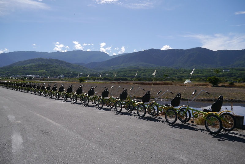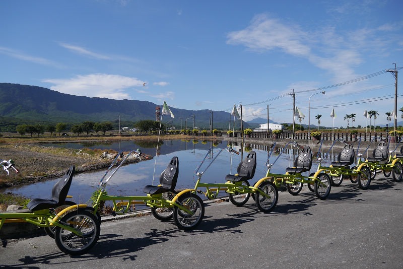 旁邊是大坡池度假會館,田邊停放著一整排的協力車~~