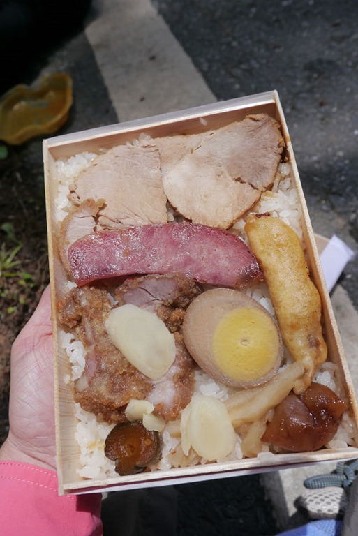 於是大家先席地而坐,吃起了午餐,我的午餐是大家一起預訂的池上飯包,懷念的滋味!  吃完飯就背起行囊上山囉~~~