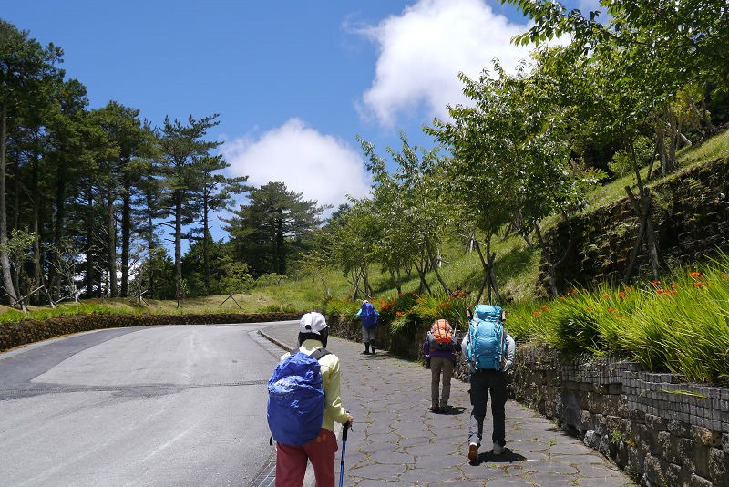 經過一番交涉,警察也只能跟我們道德勸說,並告誡我們一旦發布海上颱風警報就得下山,望著天上的藍天白雲,領隊說我們要有心理準備三天兩夜的行程會縮短為兩天一夜,第一天能如預期地抵達向陽山屋,但大概第二天就得要被趕下山了。