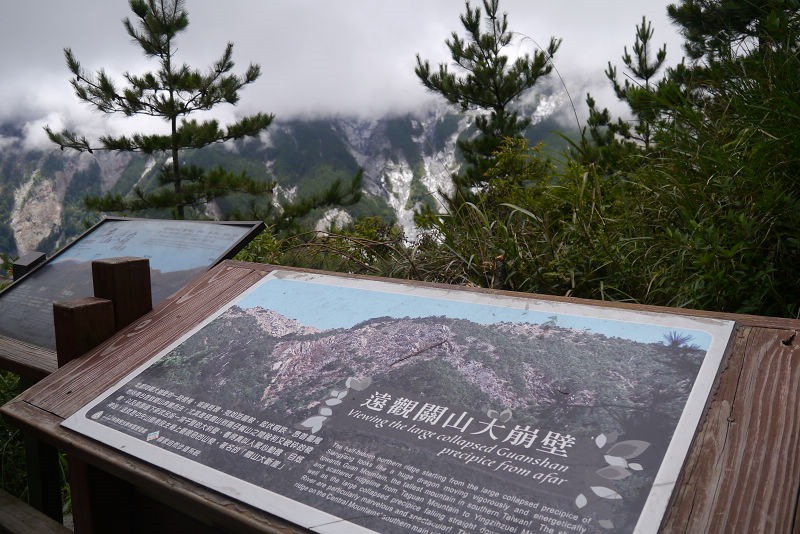 這裡的山路比先前訓練走的路都好走多了~~沿途有著高聳的樹木,走在林蔭間,非常舒服~~走著走著,到了第一個休息點,關山大崩壁。