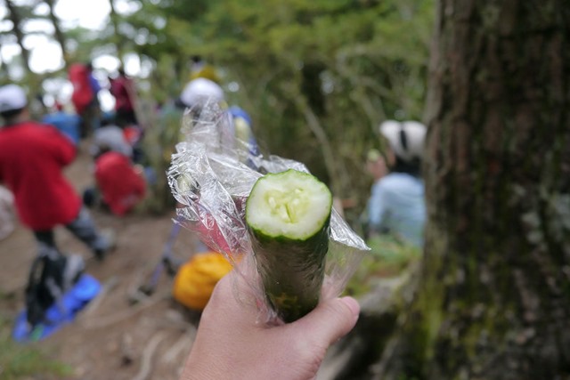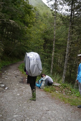 走著走著,一位山青出現了,揹著我們這兩天的食物上山,他們實在是好勇健,腳程超快……記得沒多久才擦身而過(下山背東西),不一會兒就背了一大包食物,很快的又消失在我們前方。
