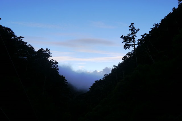 第二天的路程就比較遠了,天氣還不錯,沒辦法到嘉明湖,至少也要收服一座百岳。向陽山,這天的目的地,一點多起床吃早餐,然後就整裝出發,戴上了頭燈,一個接著前一個同伴的腳步,緩慢地往上爬。向陽山的標高3,603m,離山屋還有750m的高度要努力,希望能在日出前登頂。