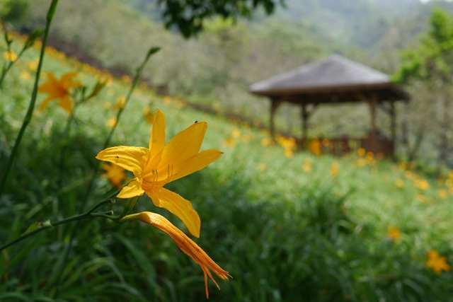小多莉好久沒出門,上週六決定去跑跑小山路,選擇了在台中新社的沐心泉,聽說那兒的金針花比較早開,五月起就有得賞花,而花東的金針花季則要到九月,搶先來這邊看看有甚麼驚喜。車子開了兩個小時,還真山裡面阿~~~後面的陡坡也真有點給他陡,對小多莉來說,當然也不成問題囉~~