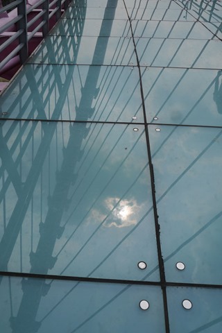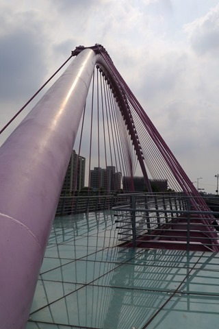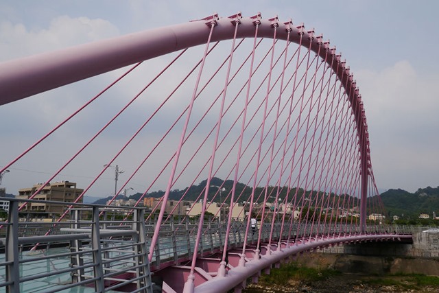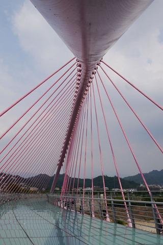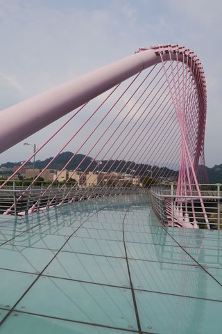 粉色的橋,加上底色的玻璃,映著藍天,還挺美的。