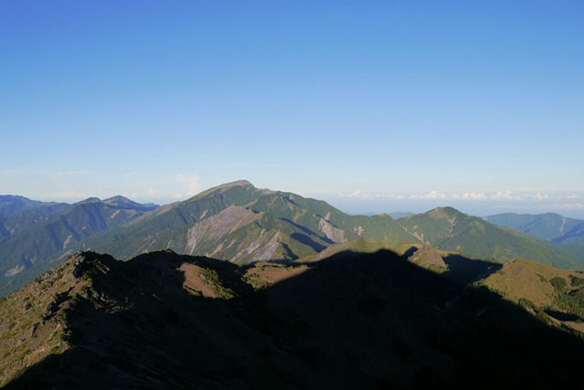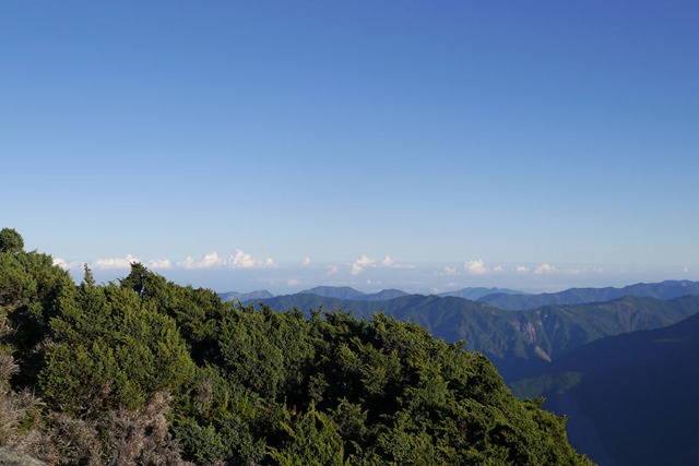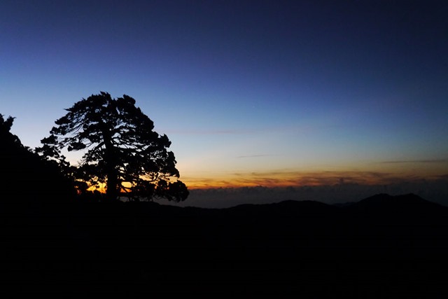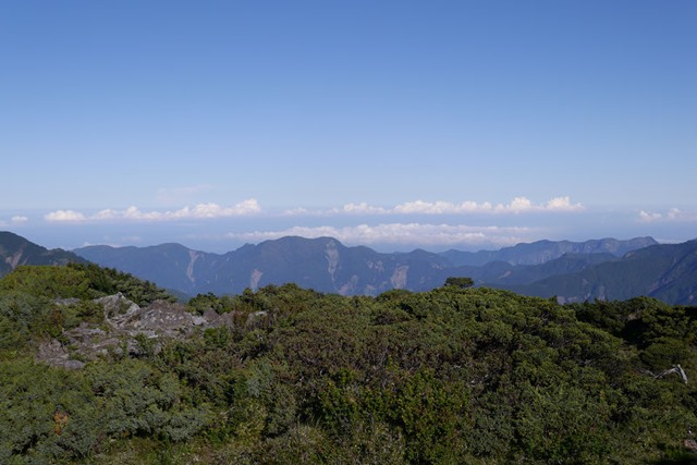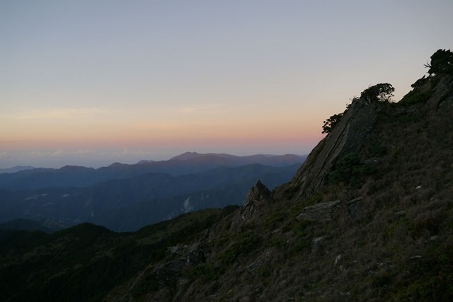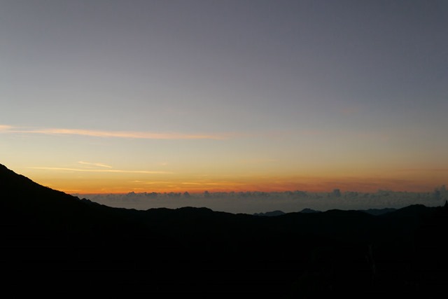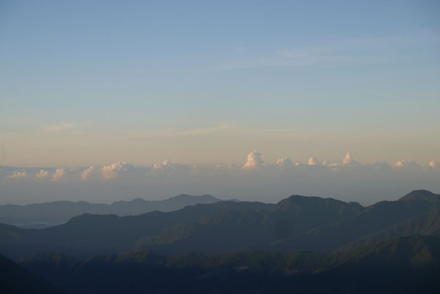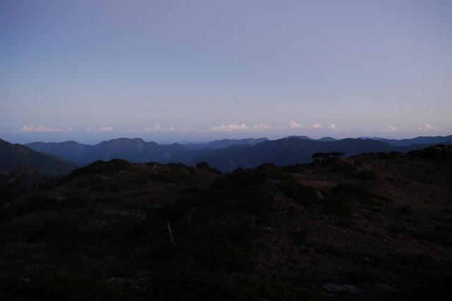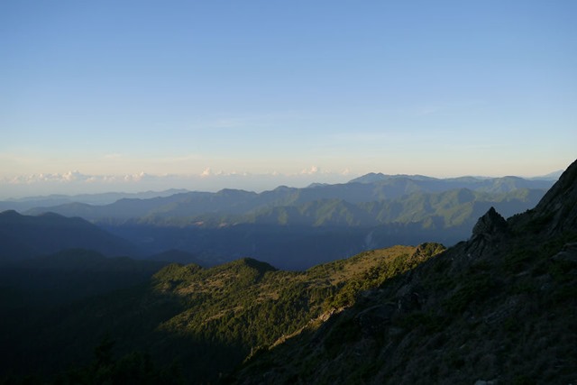 天越來越亮,漸層消失了,但出現的是壯闊的山景,還有小小的雲海。