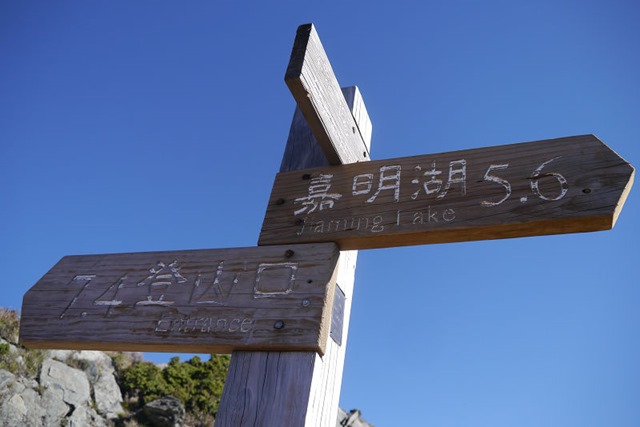 嘉明湖的路標一直出現,照原定計畫,第二天晚上要到嘉明湖避難山屋,第三天早上登上嘉明湖後再下山,但是颱風的關係,我們沒辦法去了,同伴們都覺得好可惜喔~~