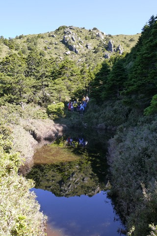 登頂之後,大家心滿意足地往山下走。對嘉明湖還是念念不忘……
