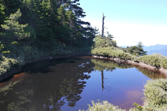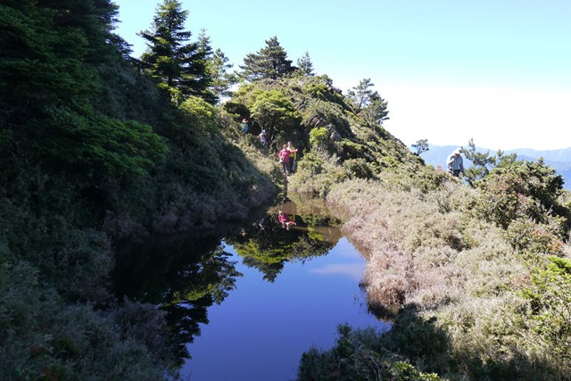 領隊是要帶我們要去黑水塘。穿過一堆高聳又翠綠的樹木。