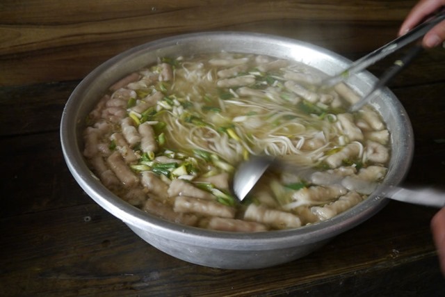 這時候來碗熱呼呼的湯麵,真是再好不過了,帥帥的山青大哥煮的麵實在是太香太好吃,一下子就被嗑光了。