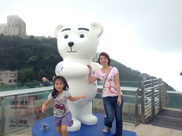 山頂平台看到的風景是360度的,但是風好大呀~~VISA小熊很可愛,大家都搶著跟VISA小熊照相。