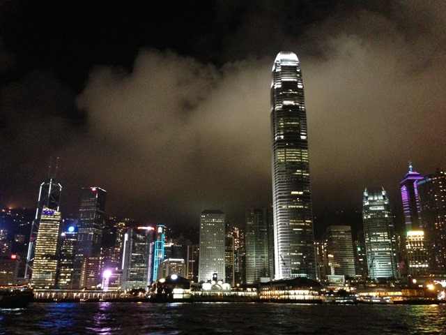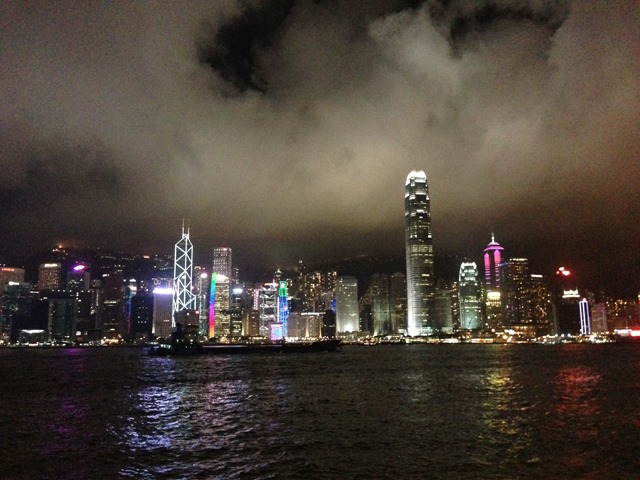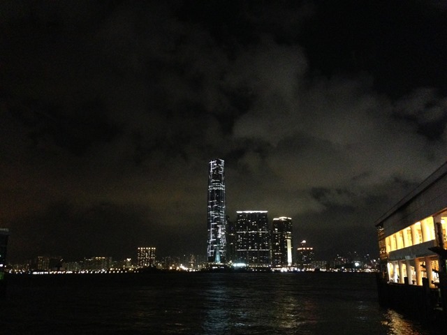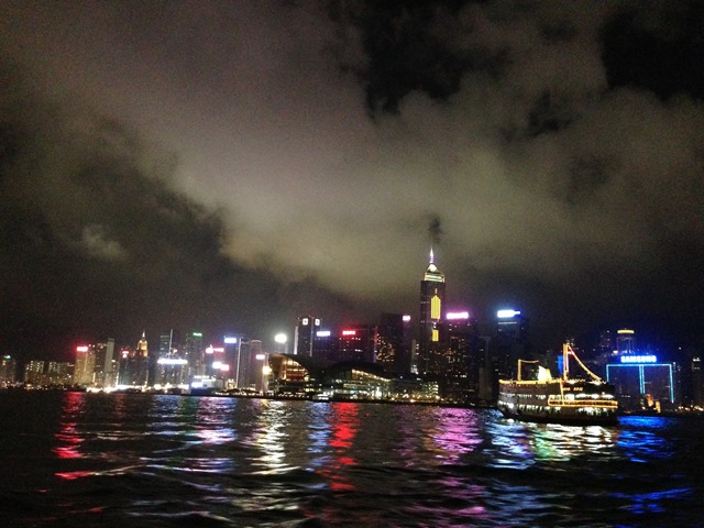 話說船運發達,很快的我們回到中環,改搭天星小輪到對面去看燈光秀。八點鐘開始,但那時候我們還在船上呀~~