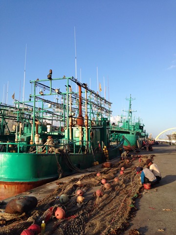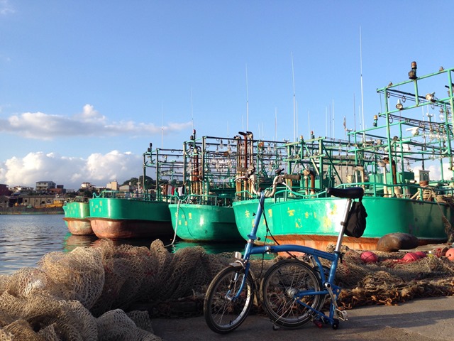 這條路線很熟了,下一站正濱碼頭,這幾艘並排的綠色漁船,映著藍天,我豪不猶豫的停下車來,拍照。
