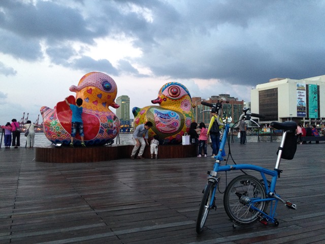 接著很快地騎回了基隆港,這時已經沒有夕陽了。但要跟地標鴛鴦照張相。