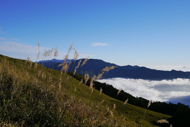 心滿意足地走回車上,回首來時路,藍天、綠草、雲海,每一張相片都好讚,隨便拍都好看。