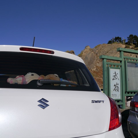 沿途停了加油站以及好幾個小七休息及補給,也順便適應高山氣候,山上的溫度估計在0度左右,抵達昆陽停車場的時候大約是4:13分,我拍下了小多莉的儀錶板,溫度計上顯示2度,並出現一個可愛的雪花符號。