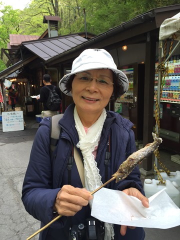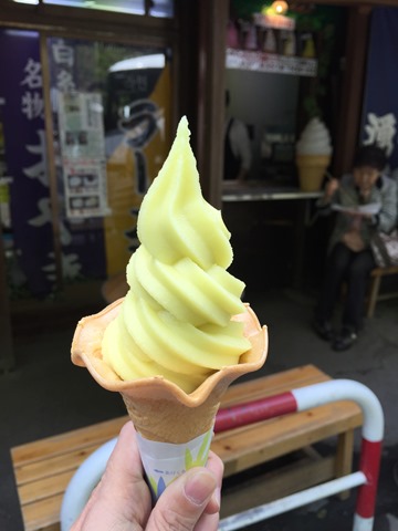慢慢散步出去等回程的公車,媽媽說要買烤魚,我說想吃特有的信州青蘋果口味冰淇淋,酸甜帶著香氣,真是好吃~