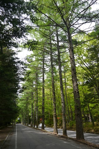 原本上午騎車有點累了,想要把中輕井澤的教堂行程挪到隔天,但朋友剛好一個星期前才去過,他告訴我們要到中輕井澤的幾個教堂路程有點上坡,要我們趁著還租著電動腳踏車的時候過去,於是吃完午餐之後就趕路去了,舊輕井澤到中輕井澤大約還有個7公里的路程,我跟媽媽很努力地騎著車,但也沒忘了要停下來拍拍路邊的好風景。
