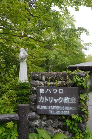 接著回到舊銀座通找飯吃,吃飯前先來去看個教堂~軽井沢聖パウロカトリック教会。輕井澤有許多教會都很有名,特色是都是以木頭所搭製,每間各有特色。