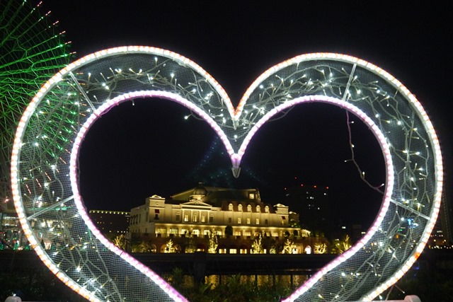 港的兩邊有個遊樂園,華燈初上,遊樂設施的霓虹燈也慢慢亮起燈來,看大家玩得好刺激,我只想在旁邊散步拍照。
