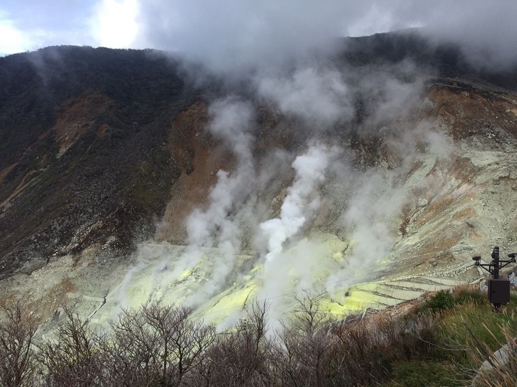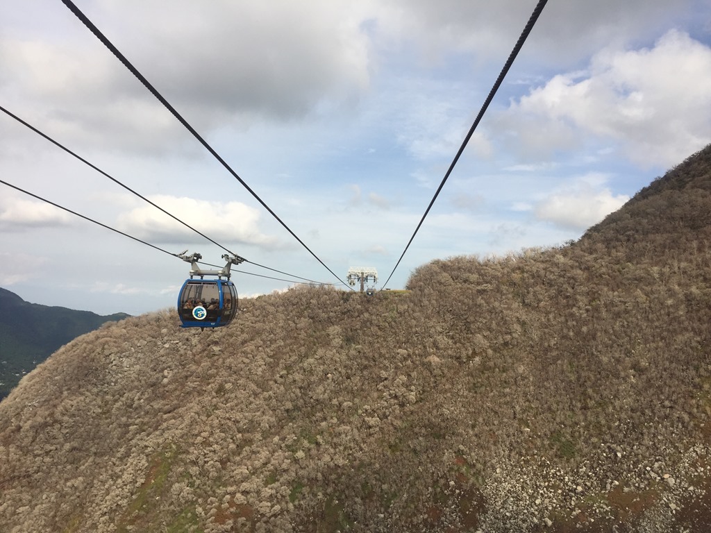 今年去了好幾趟日本,其中有一天趁出差空檔去了箱根,記得第一回去箱根已經是十多年前的事了,搭了新幹線抵達小田原站後,開始了多種交通工具換乘。(太急又沒做功課的結果就是沒買箱根周遊券,少省一頓中餐錢) 先搭乘箱根登山鐵路到達強羅,再換搭箱根空中纜車,抵達第一個景點,大涌谷,火山爆發後留下來的特殊景觀,這就有點像陽明山的小油坑,但是壯觀多了。
