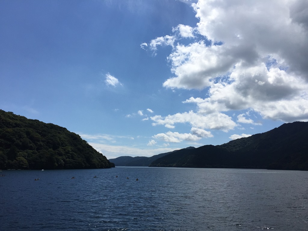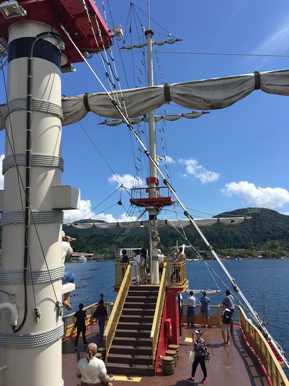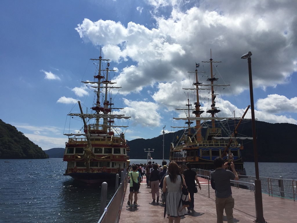 這天的天氣相當好,但是雲量很多,看不到富士山,印象中我上次來的時候可是陰雨綿綿,冷得很。繼續搭乘空中纜車,往桃園台港搭乘箱根海賊觀光船,