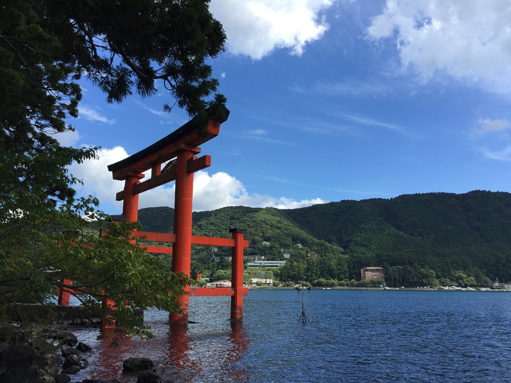 在箱根挺町港下船後,準備步行前往今天主要的目的地,箱根神社,下船後才發現還可以再搭一小段到元箱根港,找了公車搭,結果路上塞車也才做一站,用走的就可以到了,又是沒認真研究地圖的下場。但其實無所謂,自由行就是會有這些意想不到的事情發生,還好不趕時間。