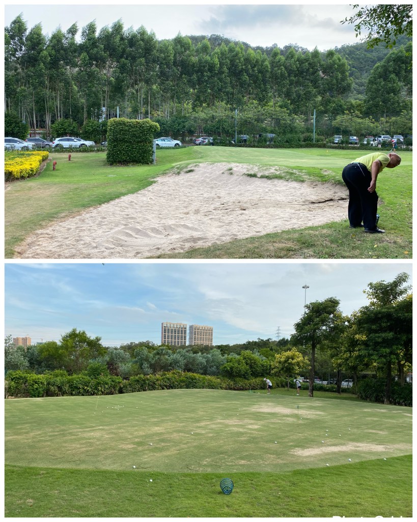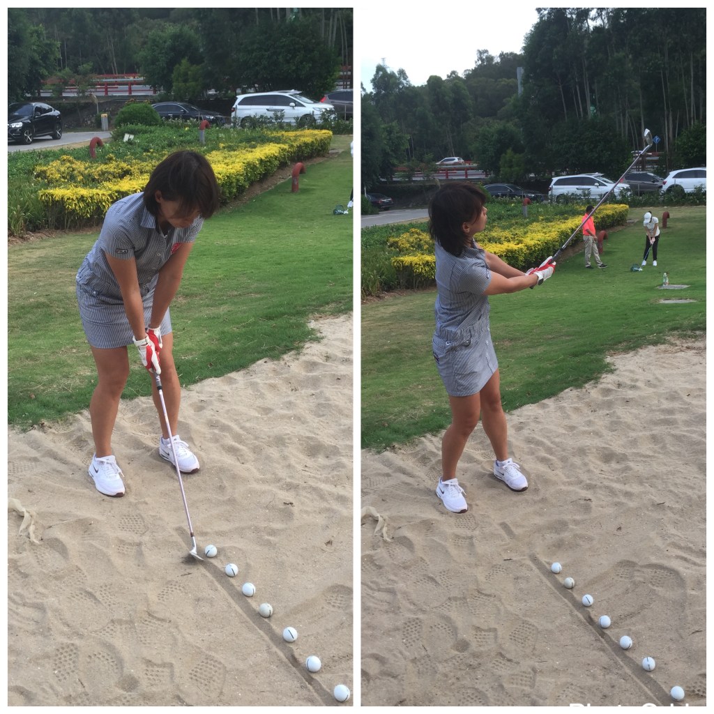 以上適用於果嶺邊的沙坑,那球道上的沙坑怎麼辦?教練說,就正常打就好囉~~這句話說得輕鬆,真的掉到沙坑去,一點都不正常!