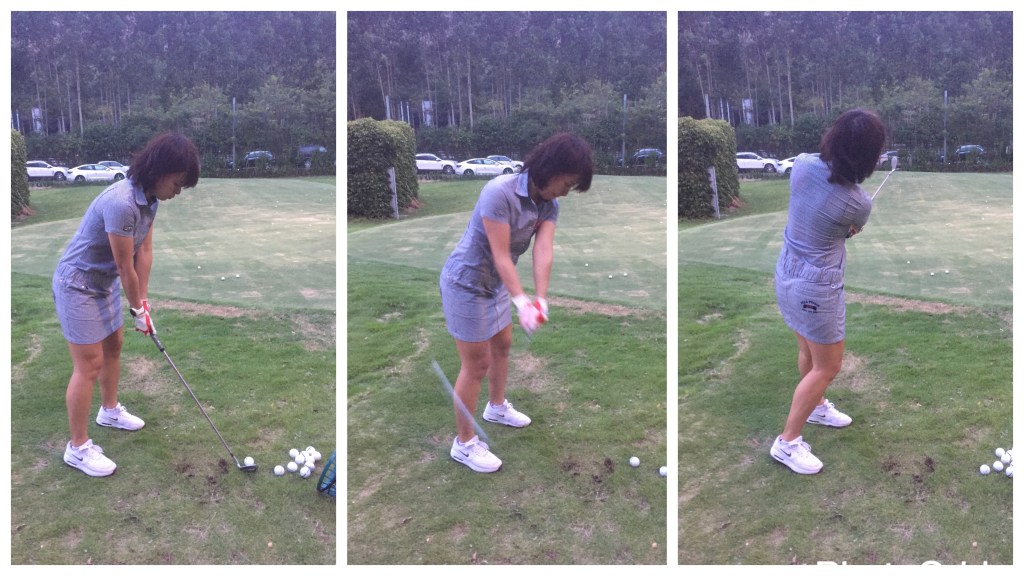 難度較高的10-2點鐘方向及11-1點鐘方向,我常常會上桿過頭,超過指定的角度,也常忘了肩膀要轉,變成用手打,老是打出剃頭球,另外教練也提示,上到11點鐘方向的時候,手腕跟桿子呈垂直,但是桿子是往後斜的45度!擊球的時候要記得翻手,這樣才可以利用這瞬間的力量打出距離。