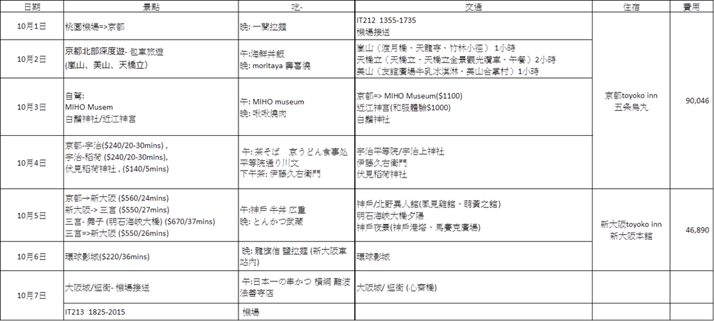 記得一開始規劃路線的時候,第三天是想要去琵琶湖的另一邊,近江八幡及彥根城,都是搭火車,但這兩個景點好像不是很熱門,查到的攻略也不是太多,因此非常的猶豫。在出發前二週心血來潮,上網查了租車的費用,發現一天也才9千日幣左右,於是就決定換我當司機兼導遊,行程就這樣改到Miho museum、近江神宮和服體驗+琵琶湖白鬚神社,從京都出發車程皆在0.5~1Hr內,租車含油錢才一萬出頭日幣,省錢又省事。