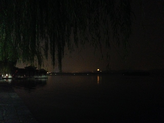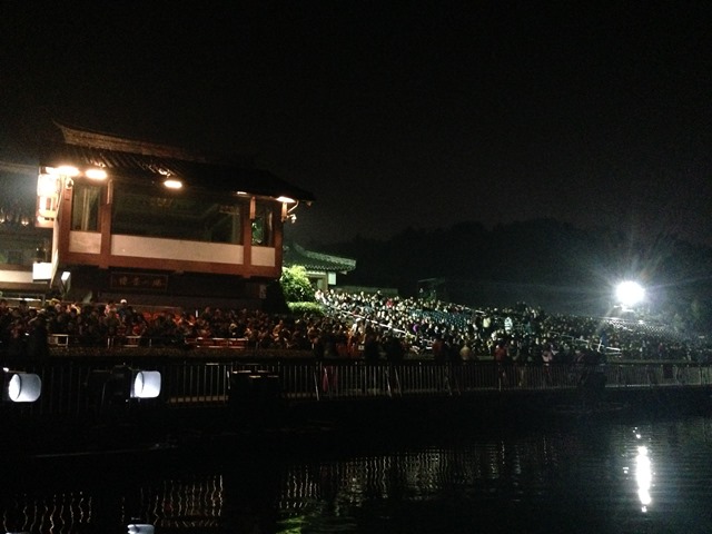 黑夜中的西湖,有種特殊的美感,回頭望向最便宜的門票區,印象是RMB$260,離表演的舞台稍遠一點,也坐滿了人。
