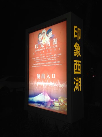 晚餐後的行程則是欣賞"印象西湖",門票有點貴,親水區要RMB$350元,但是既然都來了,又有時間,為什麼不看一下呢?  吃完飯後散個步就可以到印象西湖的表演地點。