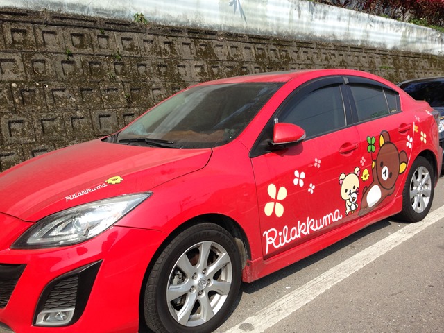 看完小鴨,還有一些時間打算去外木山繞繞,做做運動,騎著騎著在路上竟然看到一台懶熊車,天啊~~~真是太可愛了。我可捨不得把小多莉也貼成這個樣子。