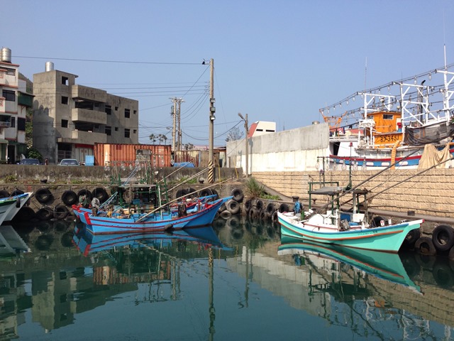 一個大下坡,騎到了外木山漁港,漁船都靠在岸邊等過年。