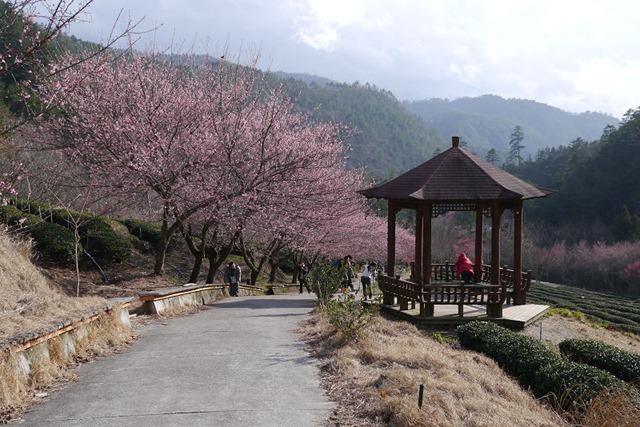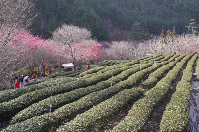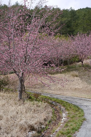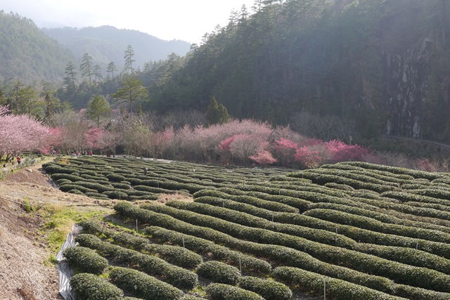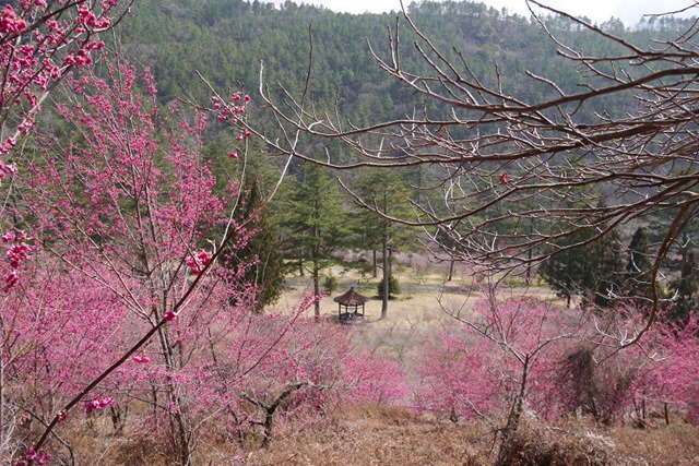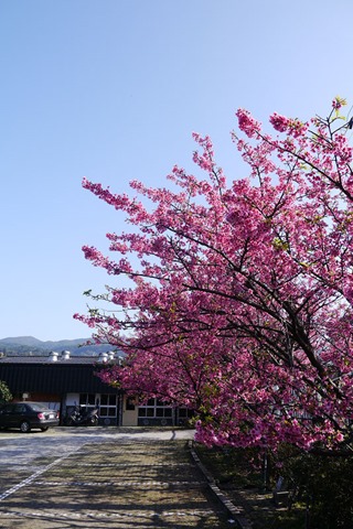 餐廳的屋頂,可以俯瞰整片櫻花林,另一邊則是農園。