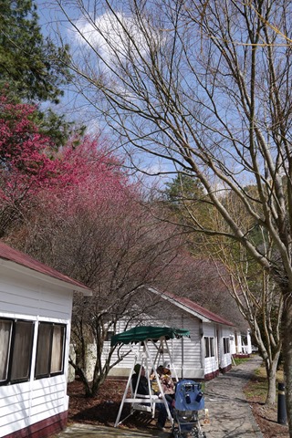 入園前看到櫻花樹上有白白的塑膠袋,走進來才發現,是………………素還真~~有人在這邊拍寫真集。這才想到忘了把小熊帶出來拍照。