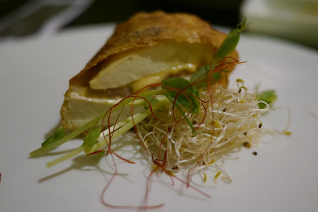 最後補了一道炸響鈴,就是把很薄的豆腐皮拿去酥炸,小油,但口感的確不錯。