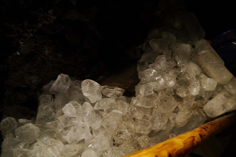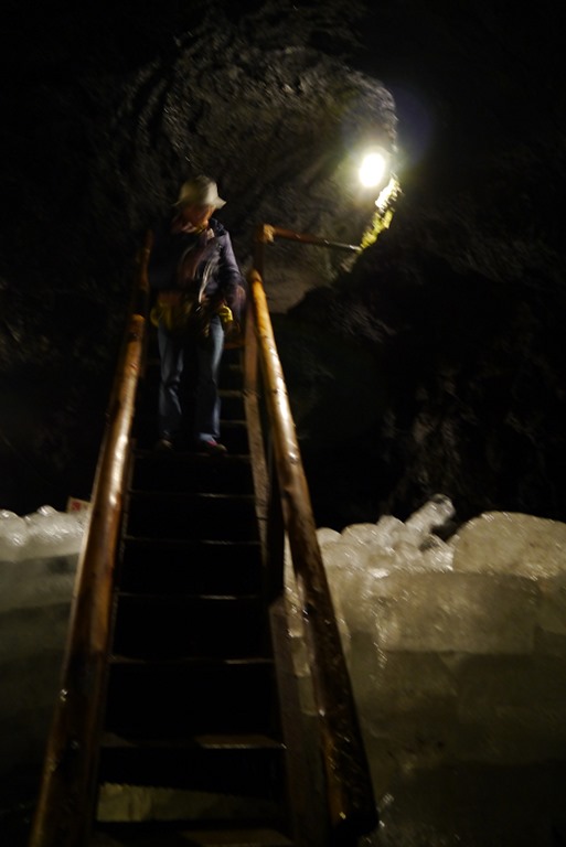 然後就再下去探險囉~這個冰穴就比較低矮一點,走路要彎著腰,還要戴上安全帽,以免敲到頭。