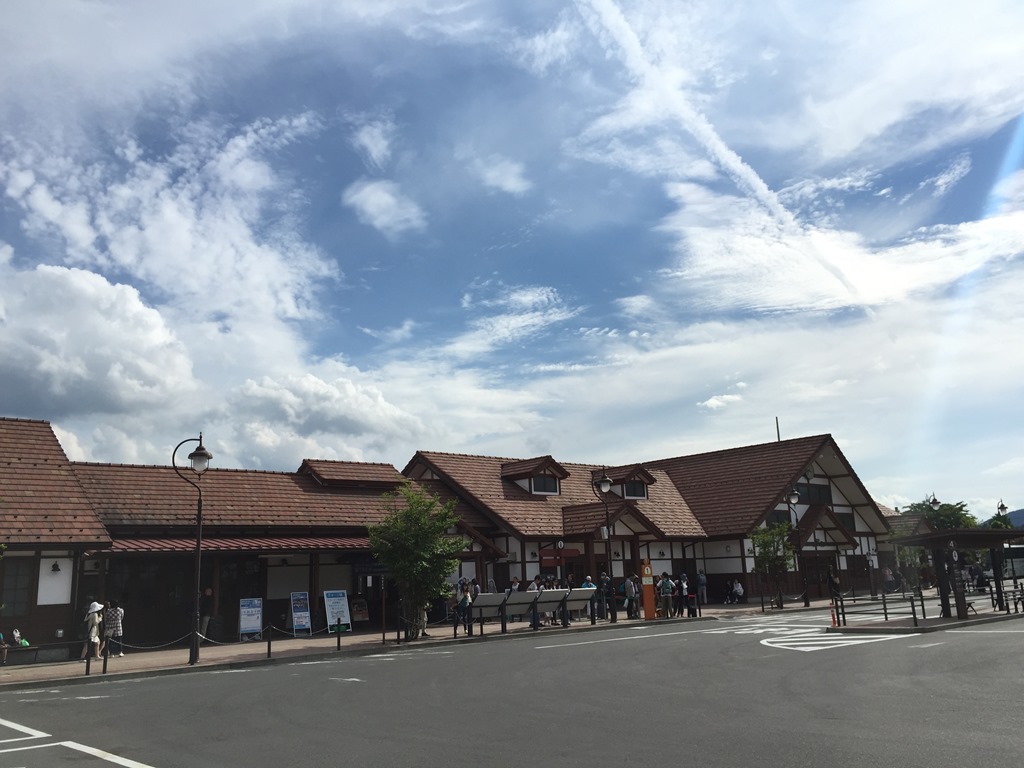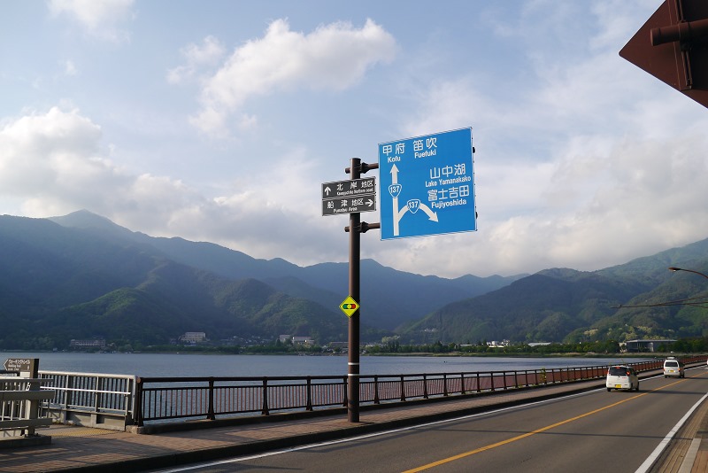 一路維持著好心情, 但遇到修路、塞車行程大約延誤了一個多小時,抵達河口湖車站。