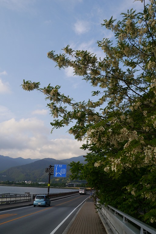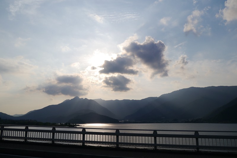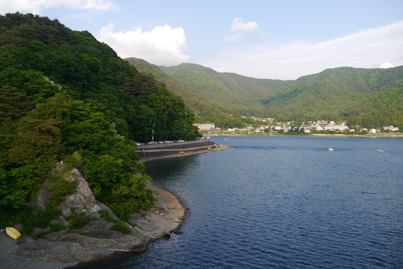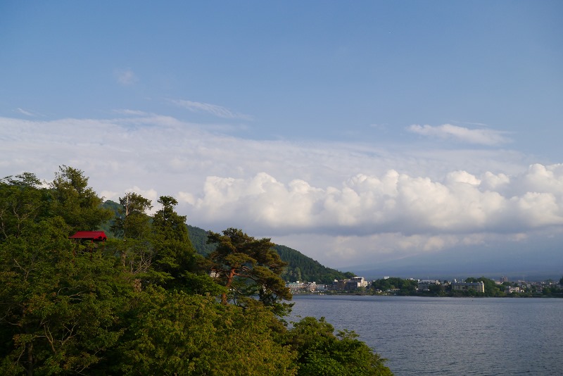 行李安置好之後,跟媽媽迫不及待要去湖邊走走拍照了,看看能不能拍到完整的富士山~~