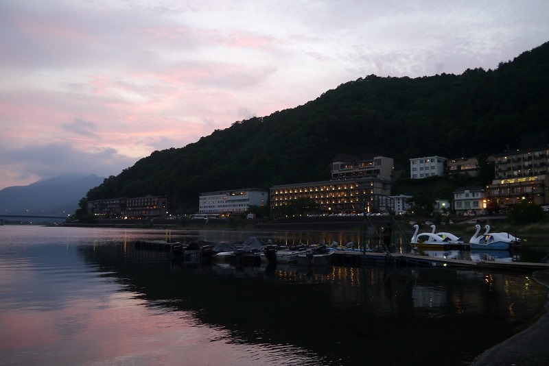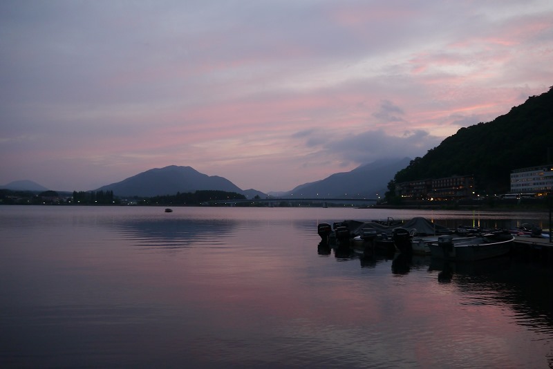 回飯店泡個湯,泡到一半發現天空出現紅色雲彩,映在湖面上好美阿,趕緊下來再拍幾張相片~~~