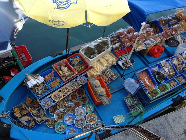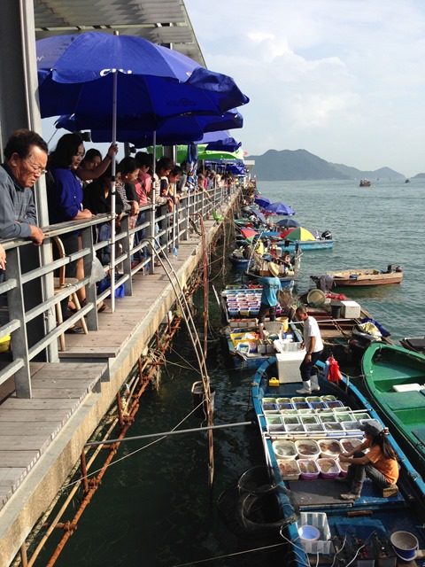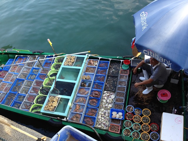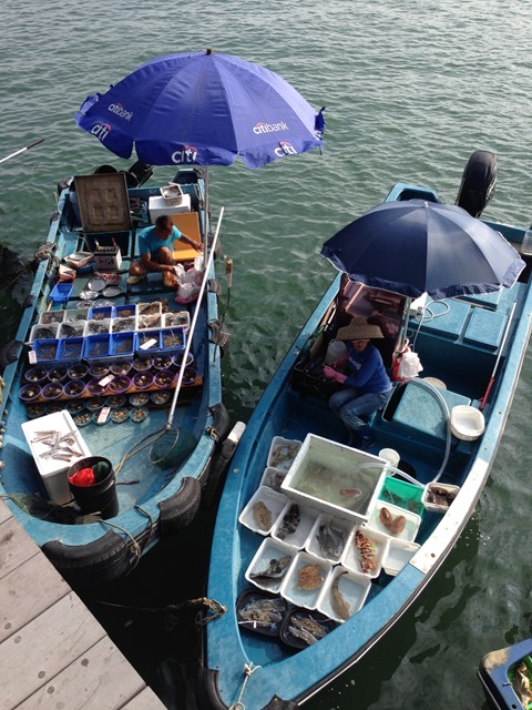 西貢這邊有個特色,就是販售海鮮的鮮魚市場,這邊的店家……….ㄜ……其實也不能說是店家,因為根本沒有店面阿~~他們就是將自己的魚貨展示在船上,讓岸邊的人在岸上觀看並選擇購買。