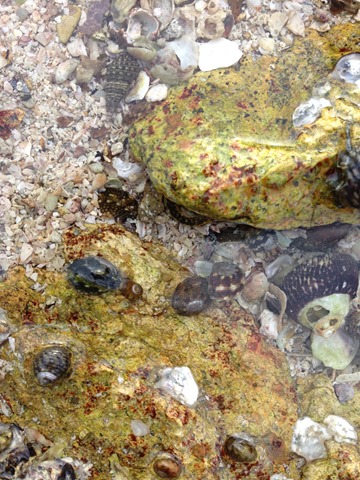 岸邊水裡的寄居蟹,每隻都看起來很自在悠閒,不會像台灣的寄居蟹感覺隨時都冒著生命危險在行走著。