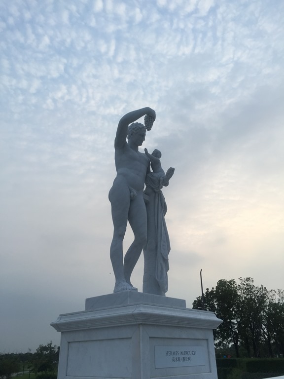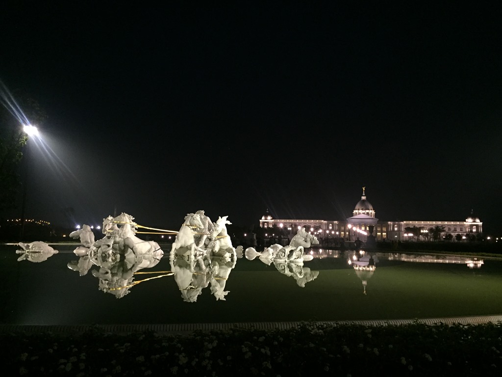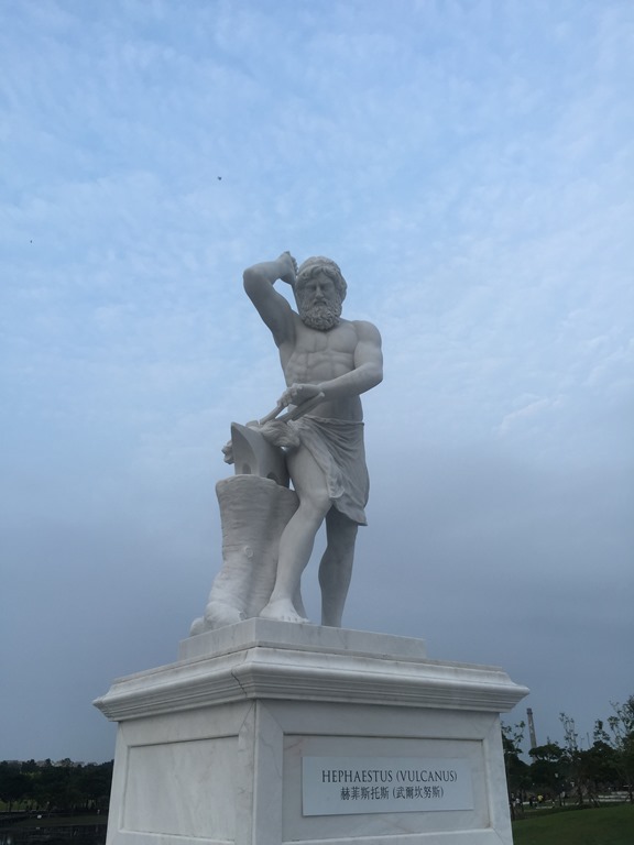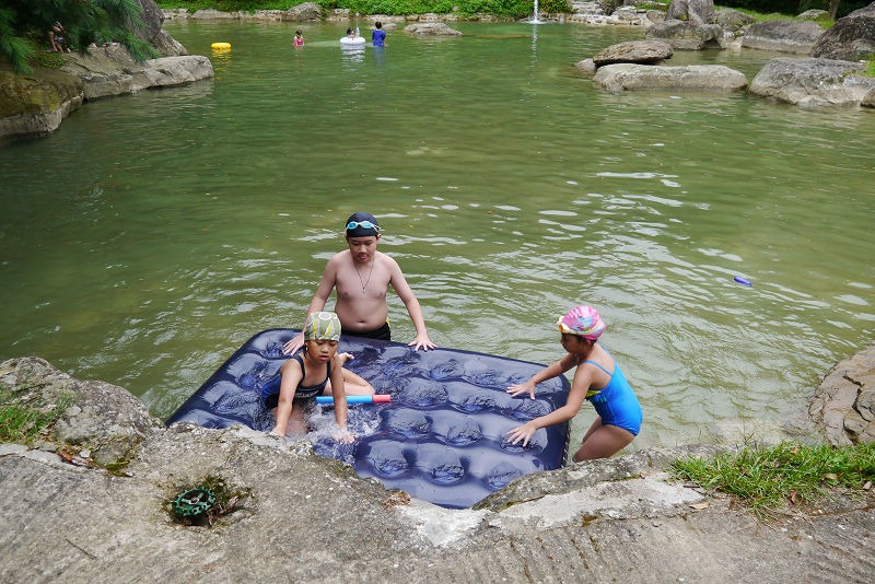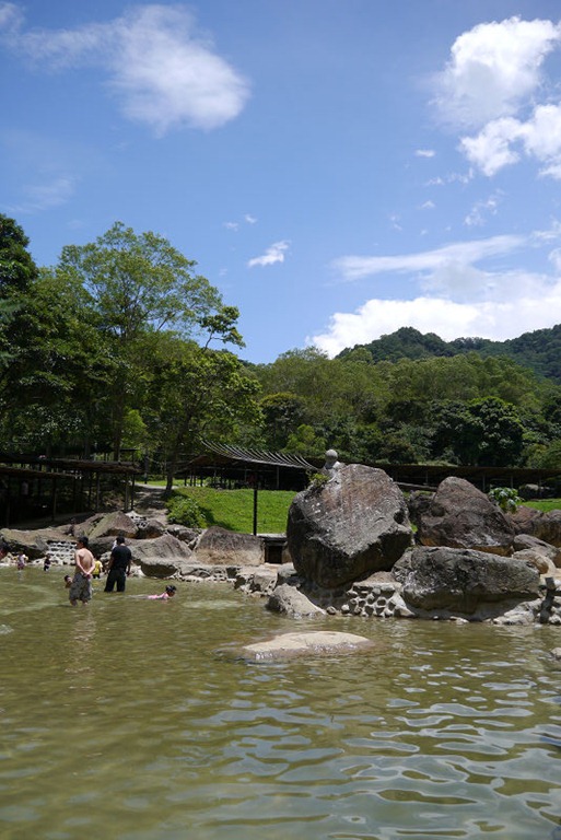 昨天傍晚走飯店左側,今天就往右側去探險吧! 各式各樣的藝術作品在湖邊展示著,充滿著藝術氣息,沿途還經過手湯、足湯,充分抒解了遊客們的身心靈。