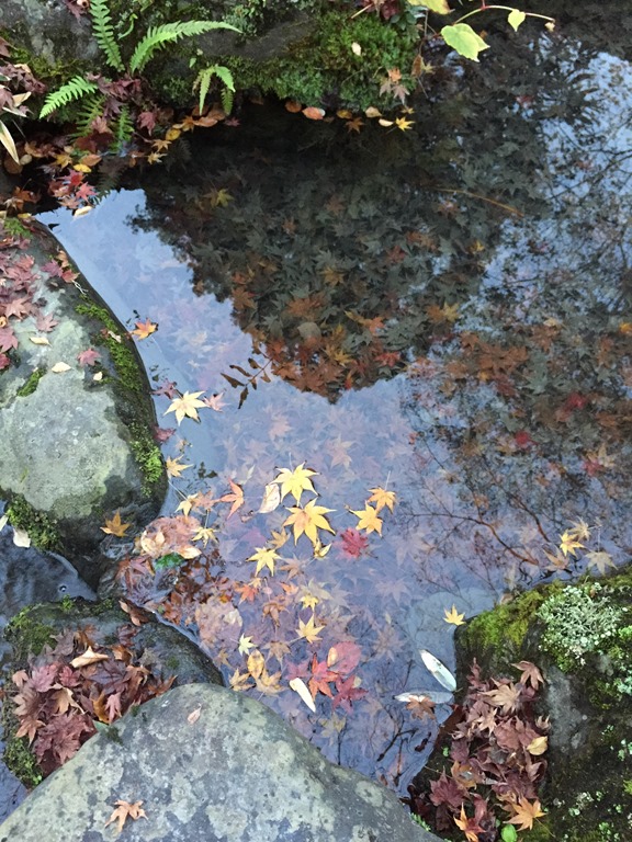車子繼續往前開,來到另一個停車點,這邊就有很多草地還有大樹了,滿地的落葉,加上下過雨的積水,楓葉在水中散亂的樣子,很美喔! 還好我穿了靴子出門,踩著水坑、蹲在水邊拍照,一點都沒有問題,後來遇到一個老人帶著一隻哈士奇來散步,簡單寒暄打了招呼,一個人的早上,愜意。