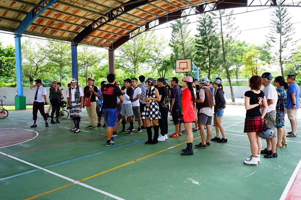 跟我想像的有點差異,總共才七台御山車出巡,但還是吸引了不少的遊客前來,好不容易擠到不錯的位置,一直聽到小孩說:「全然見えなかった」就是啥都看不到的意思啦!七台車集合致詞完之後依序出發,頂上有公雞那台車子很古老的樣子,滾得時候發出嘎嘎的響聲,看起來這御山車可是非常重的啊!完全靠人力推動,轉個方向都很費勁。